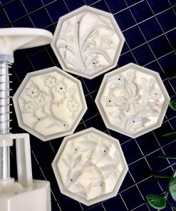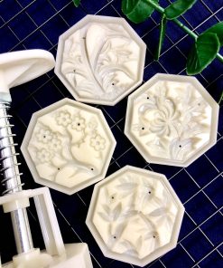 – Hoa văn khắc sâu, rất sắc nét – Kiểu khuôn làm bánh gõ, hoa văn truyền thống, rất dễ thao tác và vệ sinh.