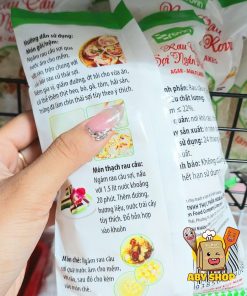 – Thành phần: Thành phần rau câu sợi 100%, an toàn và dễ chế biến cho các món chè, món gỏi,… là một sản phẩm tiện lợi, dễ sử dụng.